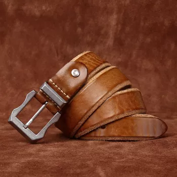 3.8CM Thick Cowhide Leather Belt with Stainless Steel Buckle for Men